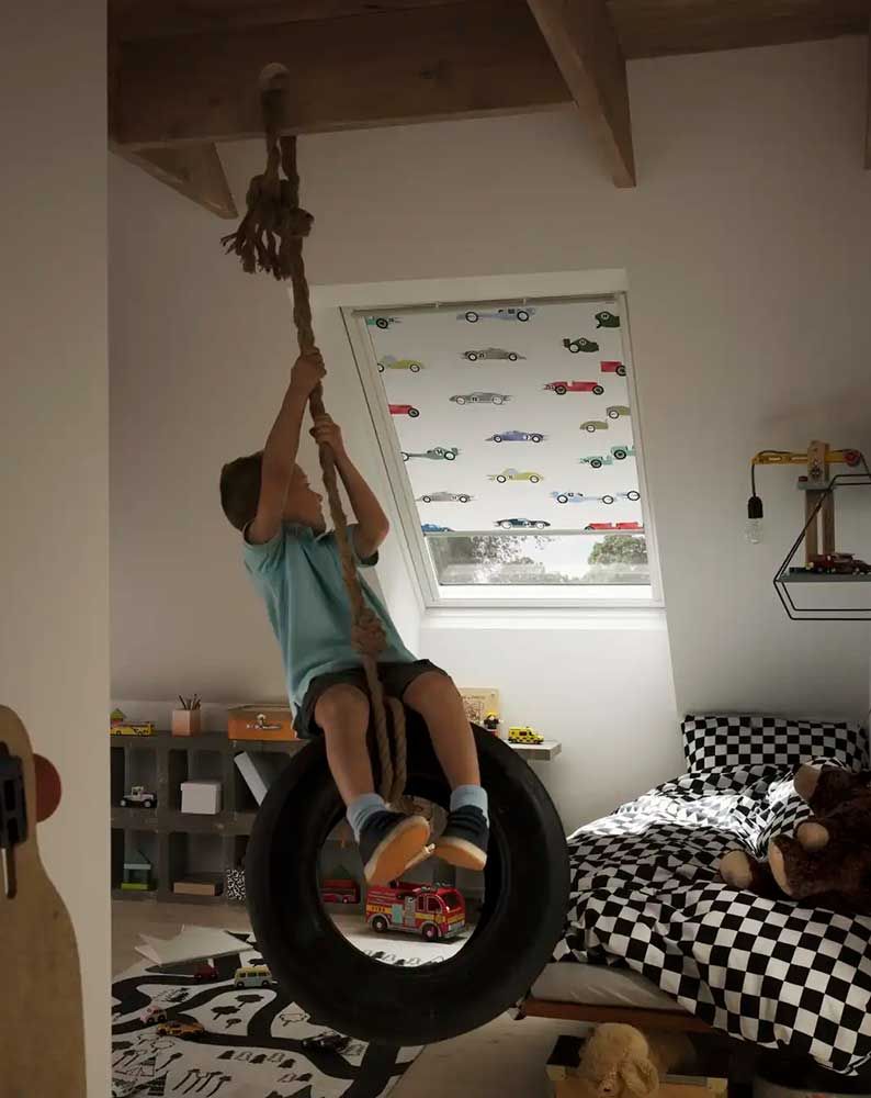 Vores Kids Collection indeholder en række manuelt betjente mørklægningsgardiner designet til børneværelset - og til børnenes hjerter. Alt fra nattehimmel - racerbiler - motorvej til ballongynger - der er noget for enhver smag med disse 9 sjove og spændende dessiner.